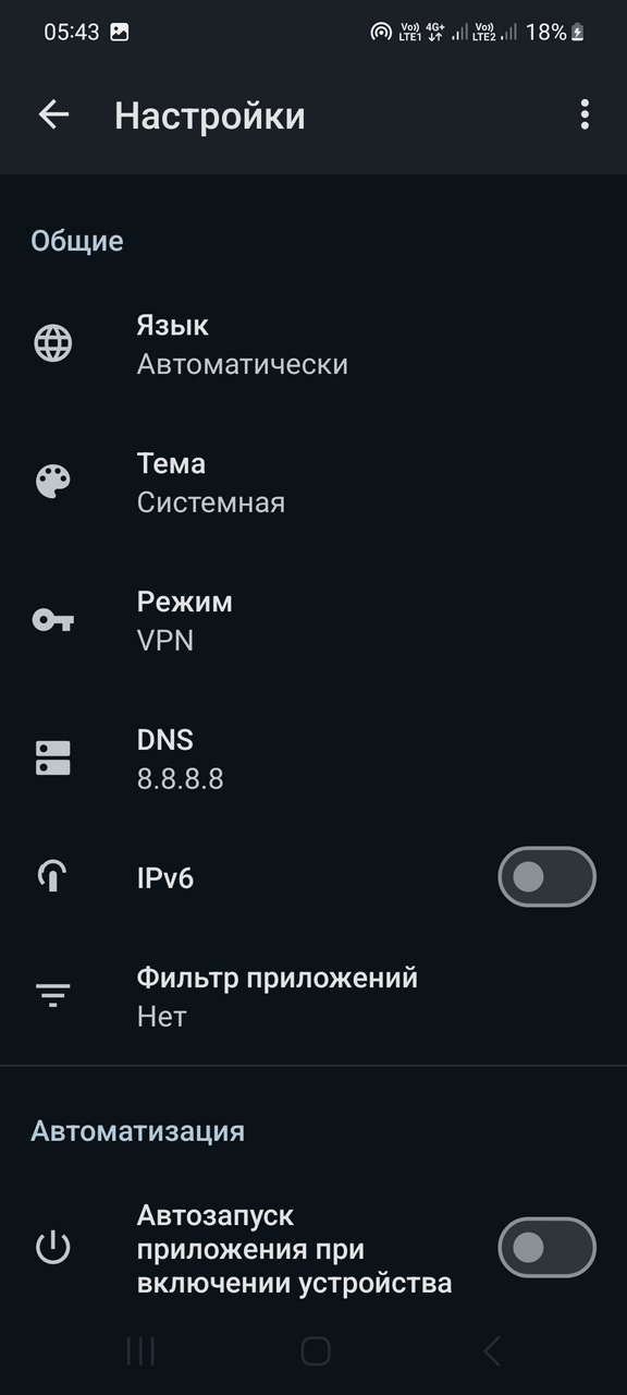 - Автозапуск VPN/Proxy при старте устройства
