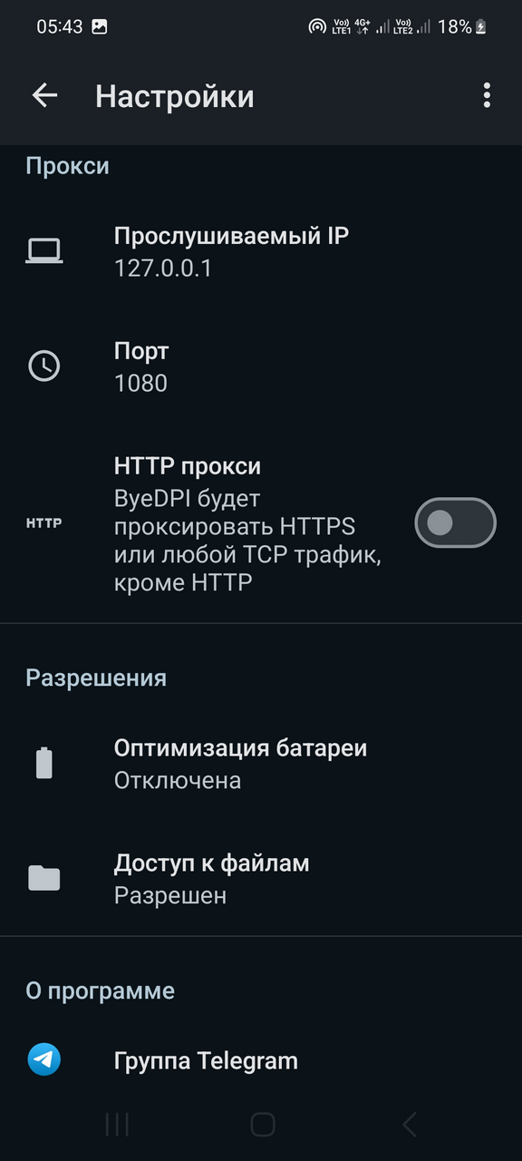 - отсутствие сторонних серверов. В отличие от VPN, ByeByeDPI обрабатывает трафик локально на устройстве пользователя, что обеспечивает более высокую производительность и конфиденциальность.