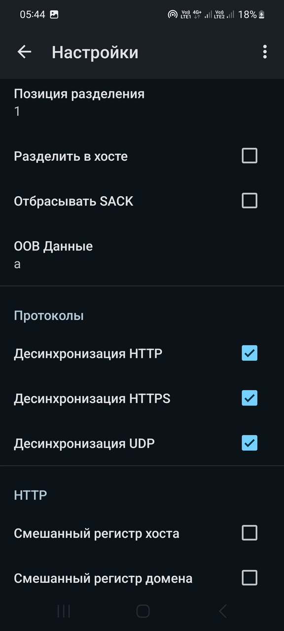 - работа на уровне сети. ByeByeDPI модифицирует и фрагментирует пакеты данных таким образом, что это запутывает системы блокировки.