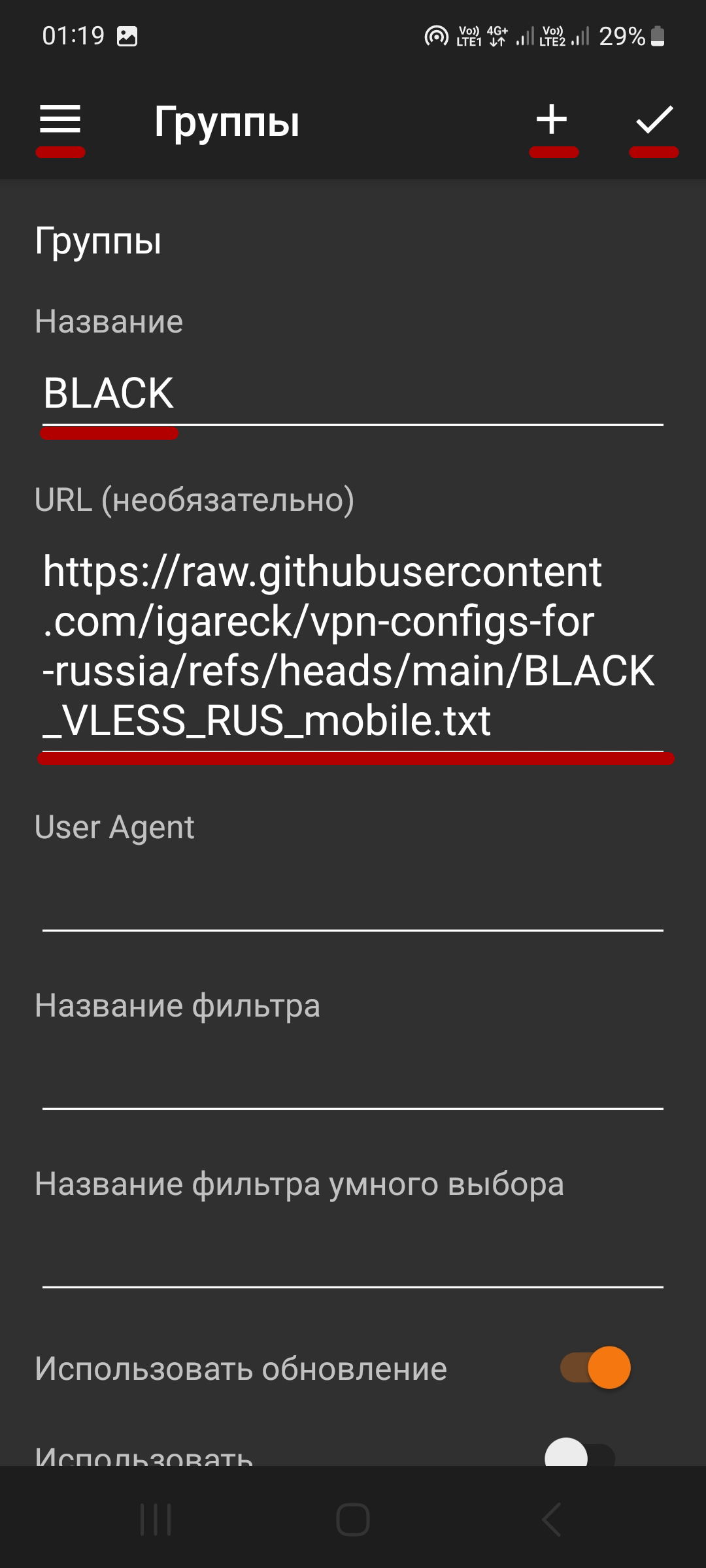 Если не работает подписка BLACK, то используйте подписку WHITE