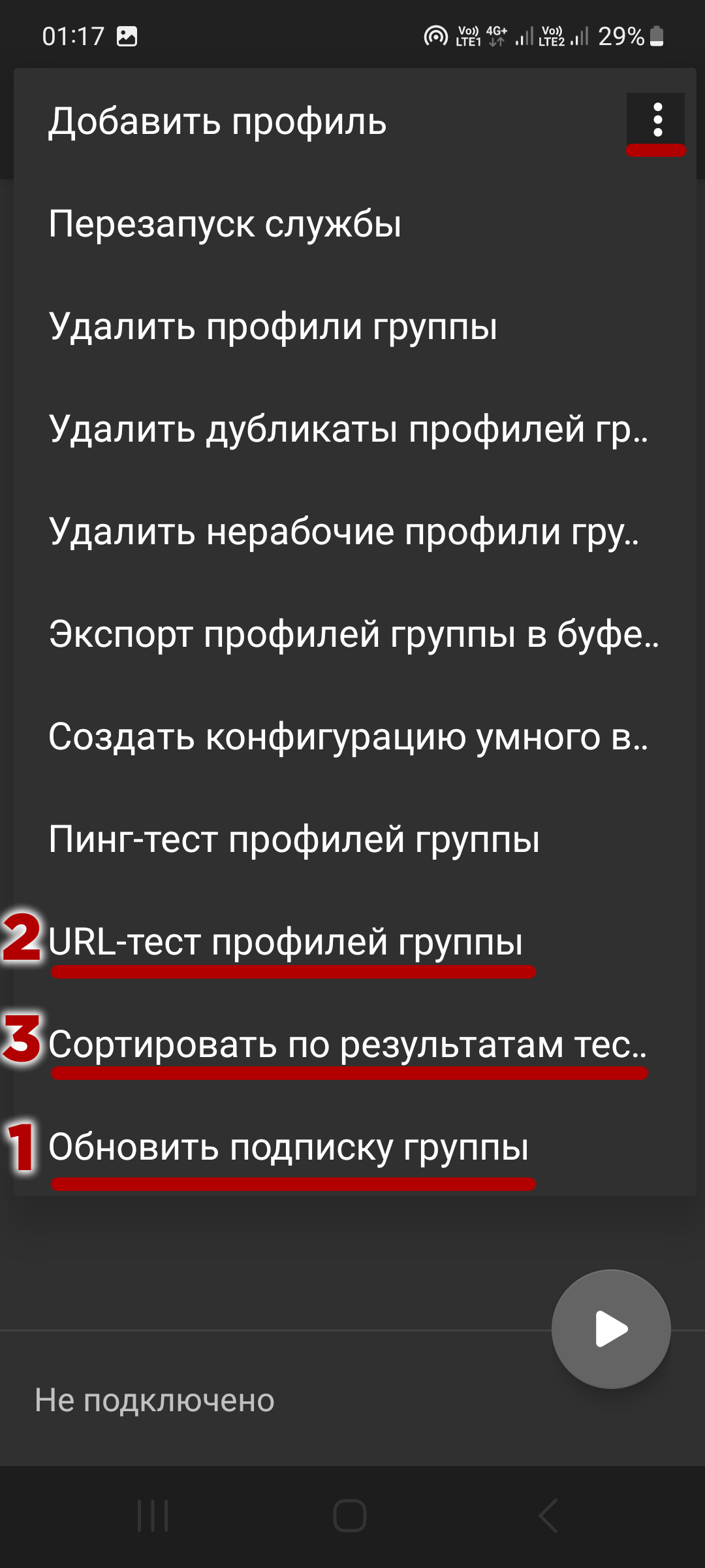примечание: URL-тест профилей группы делается около 15 мин - не надо ждать, сразу отсортируйте и пользуйтесь, а в в это время будет происходить тестирование. Через мин 15 или позже просто еще раз отсортируйте по результатам теста