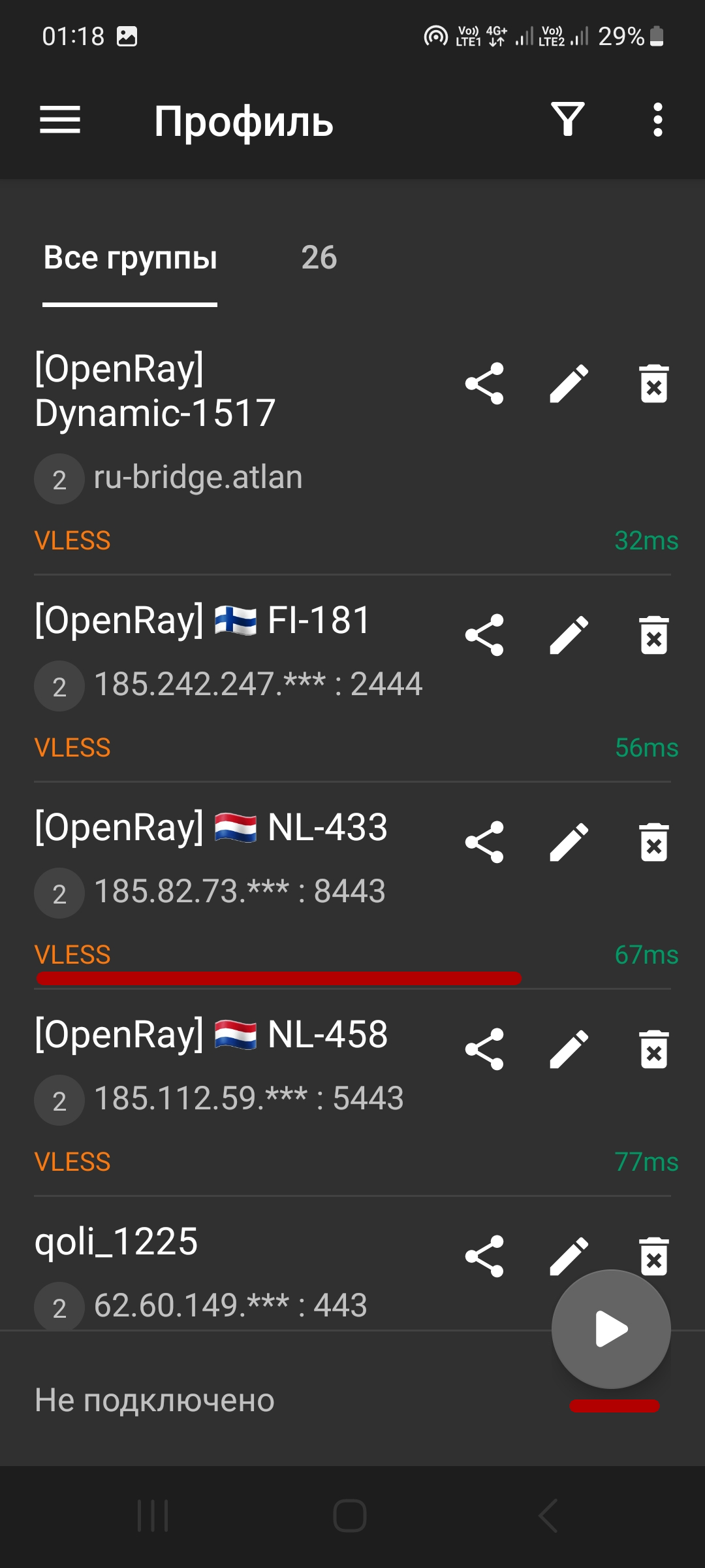 3. Сортировать по результатам теста - чем меньше пинг, тем лучше