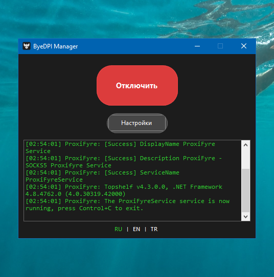 ByeDPI Manager - мини утилита для запуска ByeDPI и ProxiFyre.