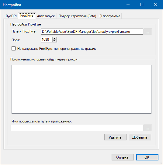 - Укажите правильный путь к файлу proxifyre.exe во вкладке ProxiFyre