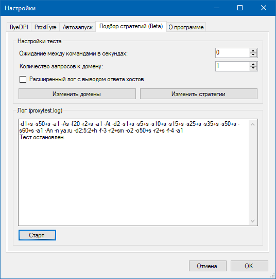 - Вернитесь на вкладку "ByeDPI"