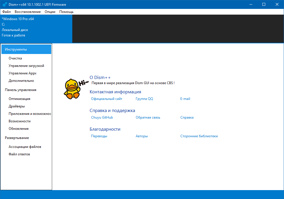 Дисм плюс плюс портабл (переносной) - программа очистки, оптимизации, настройки, копирования Windows от Chuyu Team's (Китай)