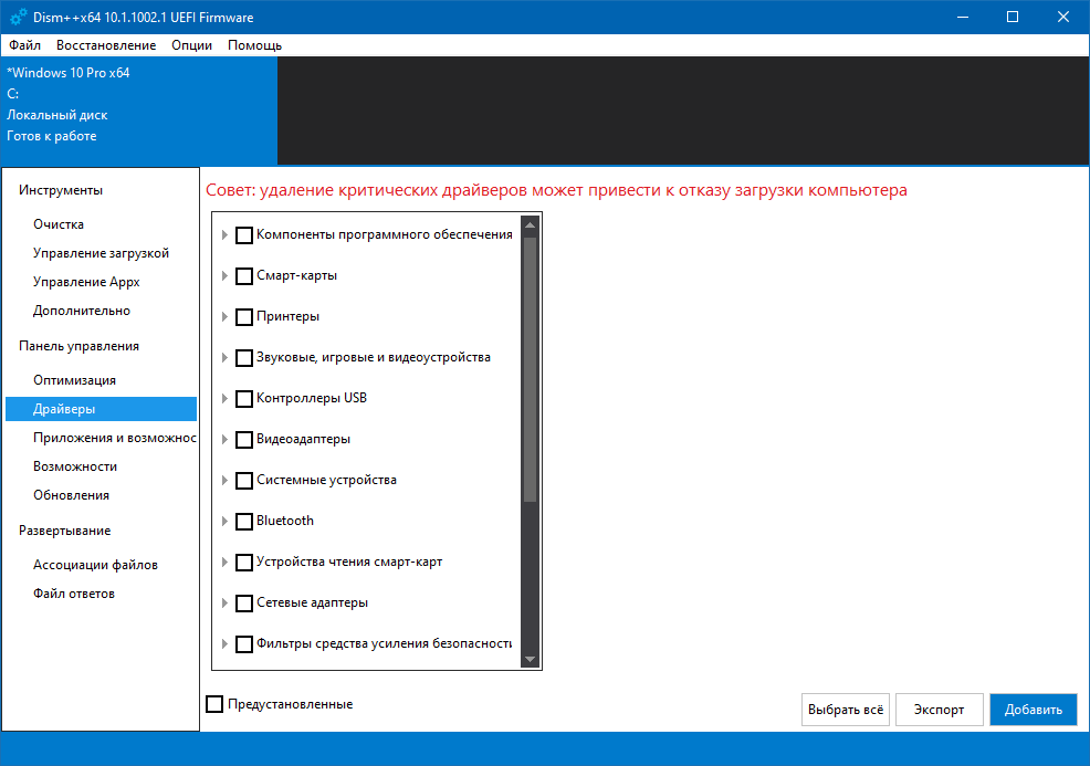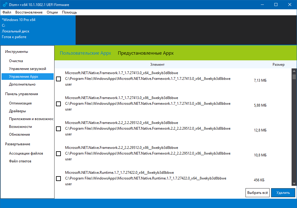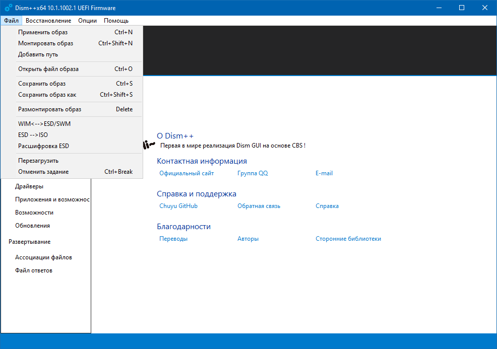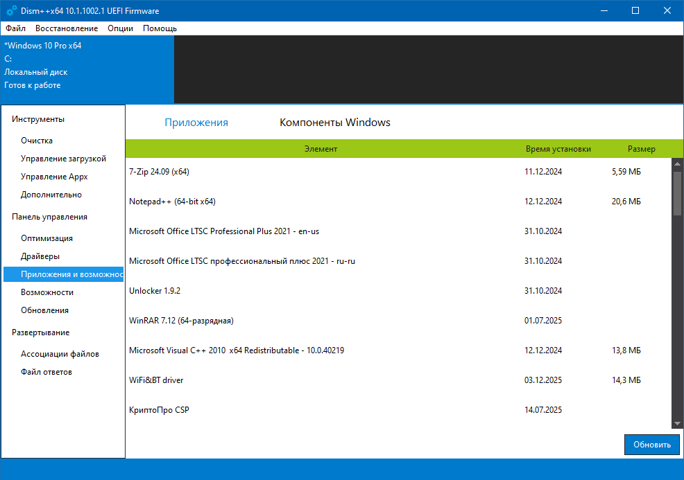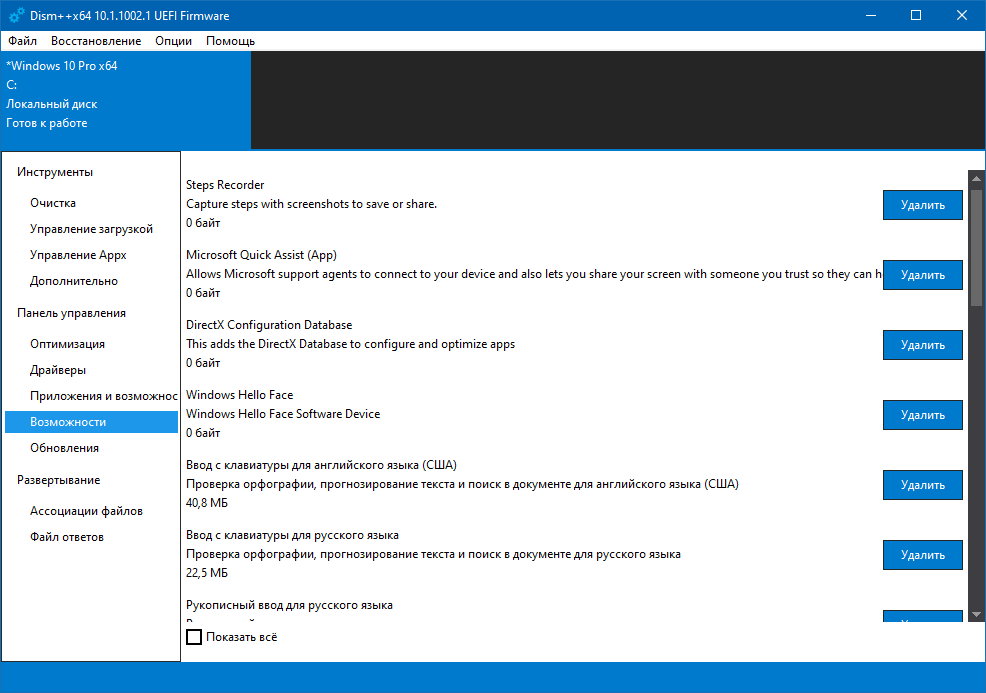 Dism++ 10.1.2002.1: подробное описание возможностей