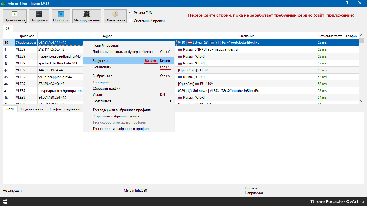 3. отсортируйте Результат теста - чем меньше пинг, тем лучше.